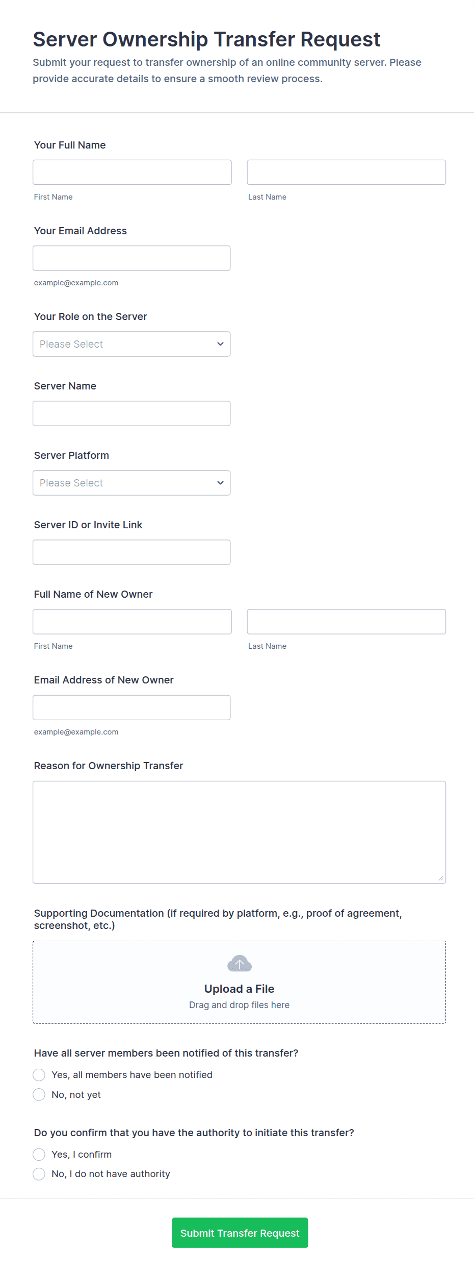 Access control forms are structured documents used to request, approve, and document access to physical locations, systems, or restricted resources. They help organizations manage who can enter certain areas, use specific equipment, or access sensitive digital systems by collecting consistent details such as requester identity, access level, justification, and approval records. Access control forms are commonly used in offices, campuses, data centers, hospitals, warehouses, and IT environments for badge requests, visitor access, temporary passes, role-based system access, and permission changes. By standardizing access requests, these forms reduce security risks, improve accountability, and create clear audit trails.