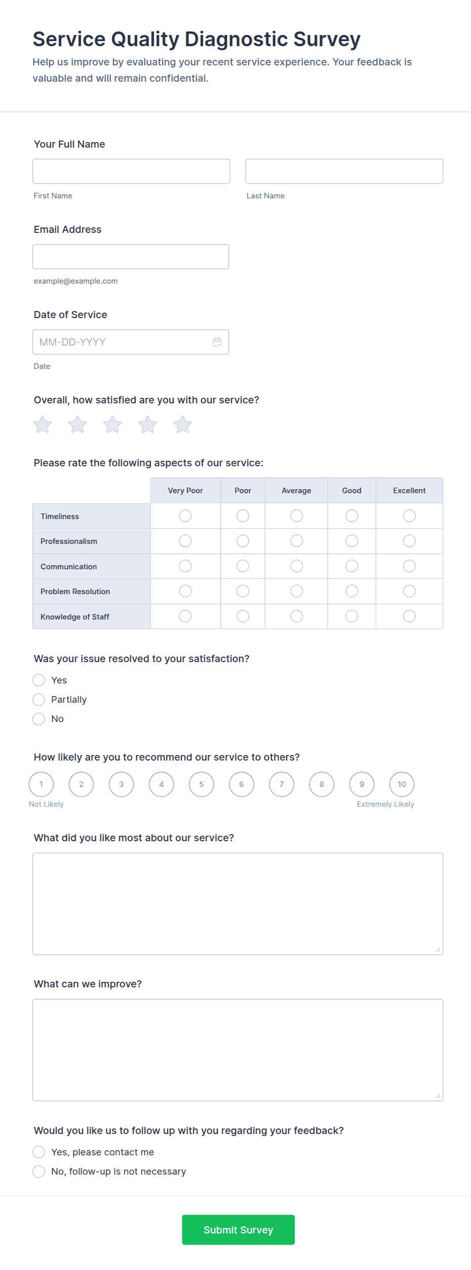 Service Quality Feedback Form