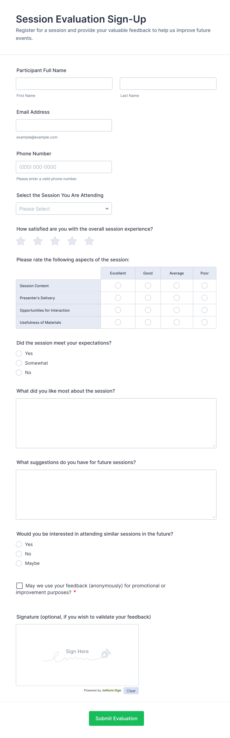 Creating an effective Event Evaluation Form is crucial for gathering meaningful feedback and driving continuous improvement in your event planning process. With Jotform, you can easily design, customize, and distribute evaluation forms tailored to your specific event and audience. Here’s a step-by-step guide to help you get started: