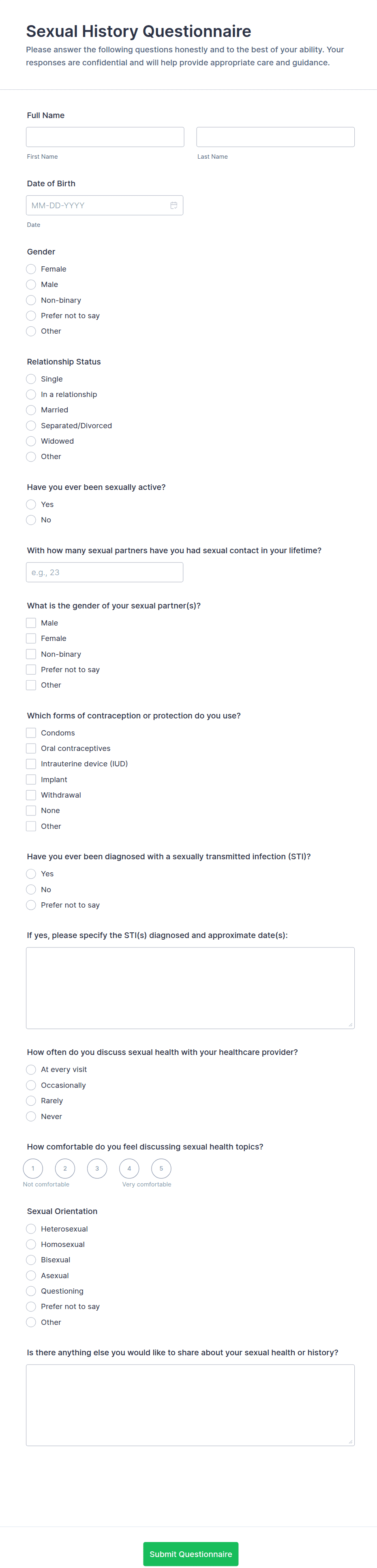 • For health risk assessments, include checkboxes or multiple-choice questions about lifestyle, family history, and specific risk factors.