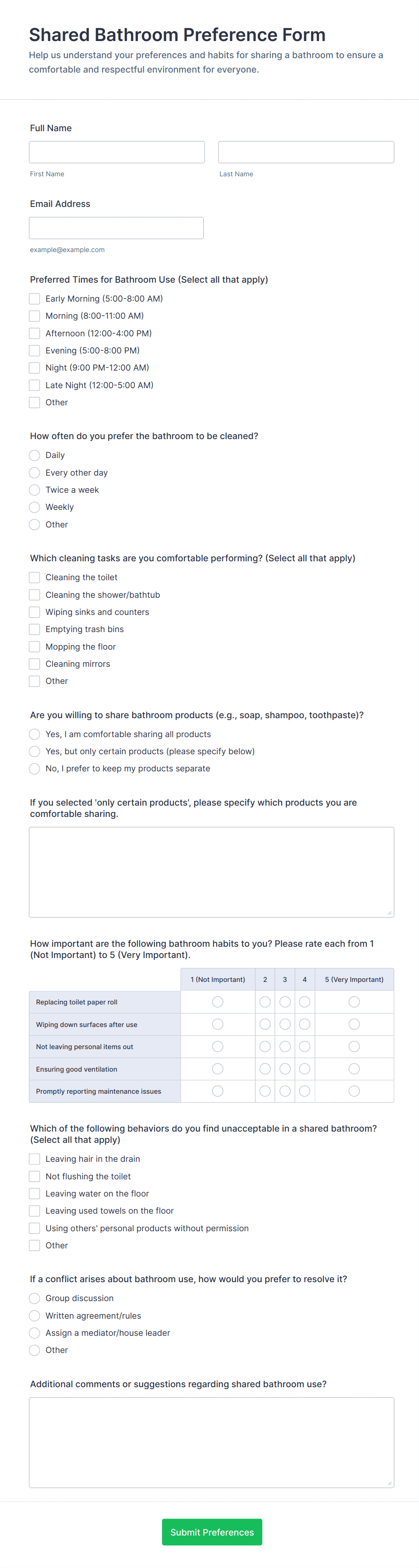 • For customer feedback, include satisfaction ratings and open-ended comment fields.