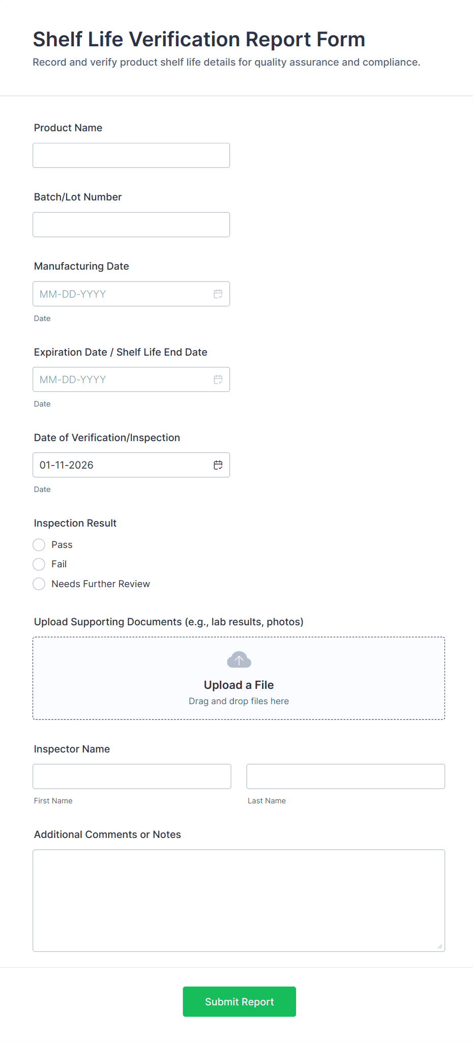 • Use dropdowns or multiple-choice fields to specify the type of verification (e.g., identity, employment, address).