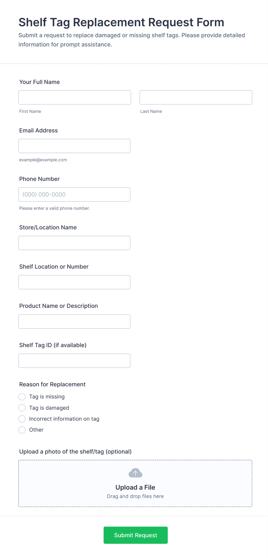 Need a better way to manage information for your store? Stay organized with online Storekeeper Forms from Jotform! Start by choosing a template below and making the design match your business’ branding and needs with our no-code builder — just drag and drop to get the look you want. Add your logo, customize form fields, choose new fonts or a new color scheme, and make other changes fast. Then share your form with a link or embed it in your website in seconds with a copy-paste embed code that works with most major website builders. Stop tracking important details with pen and paper and make the switch to powerful online Storekeeper Forms.