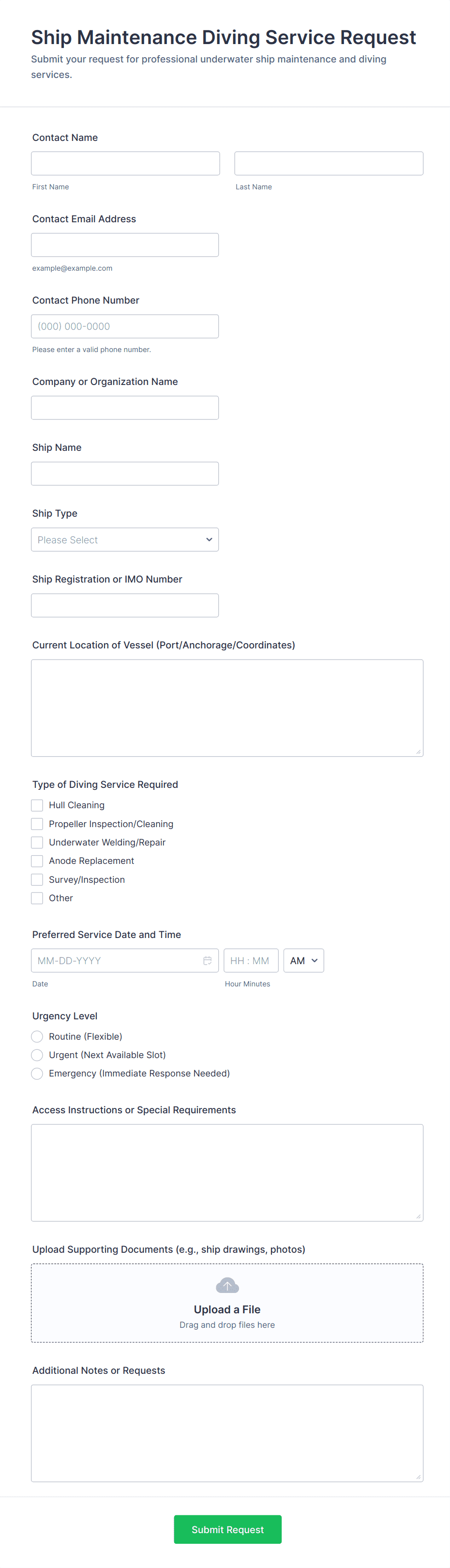 Request forms are essential tools for gathering and organizing information when someone needs to ask for something — whether it’s a service, resource, approval, or support. These forms streamline the process of submitting and managing requests in a wide range of scenarios, such as equipment requests, maintenance requests, time-off requests, IT support, purchase orders, facility bookings, and more. By providing a standardized way to collect all necessary details, request forms help organizations ensure that every request is clear, trackable, and actionable, reducing miscommunication and delays.
