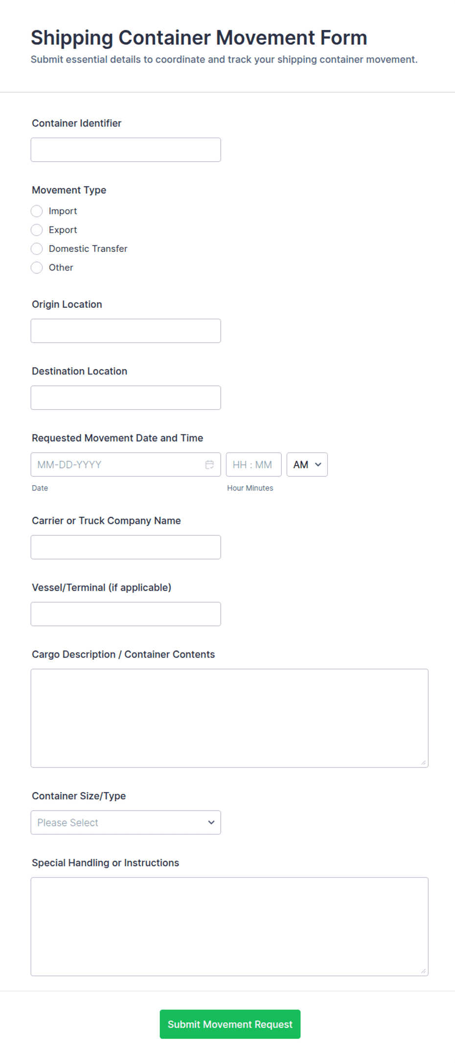 A Transportation Request Form is a digital document used to collect and manage requests for transportation services, such as vehicle bookings, shuttle arrangements, or delivery scheduling.