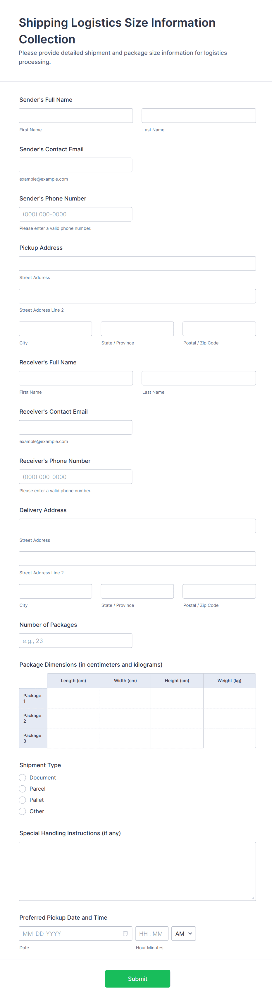 • Delivery Forms: Emphasize item descriptions, delivery addresses, and time windows.