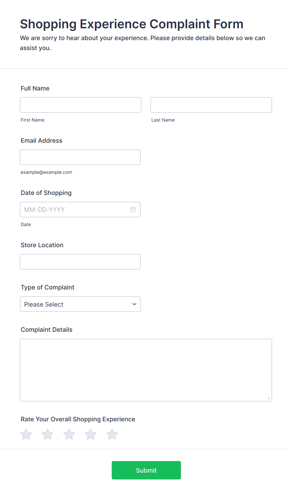An Online Complaint Form is a form template that streamlines customer feedback process. It's a perfect solution for businesses to efficiently capture, track and tackle customer complaints, boosting customer satisfaction rates and retention.