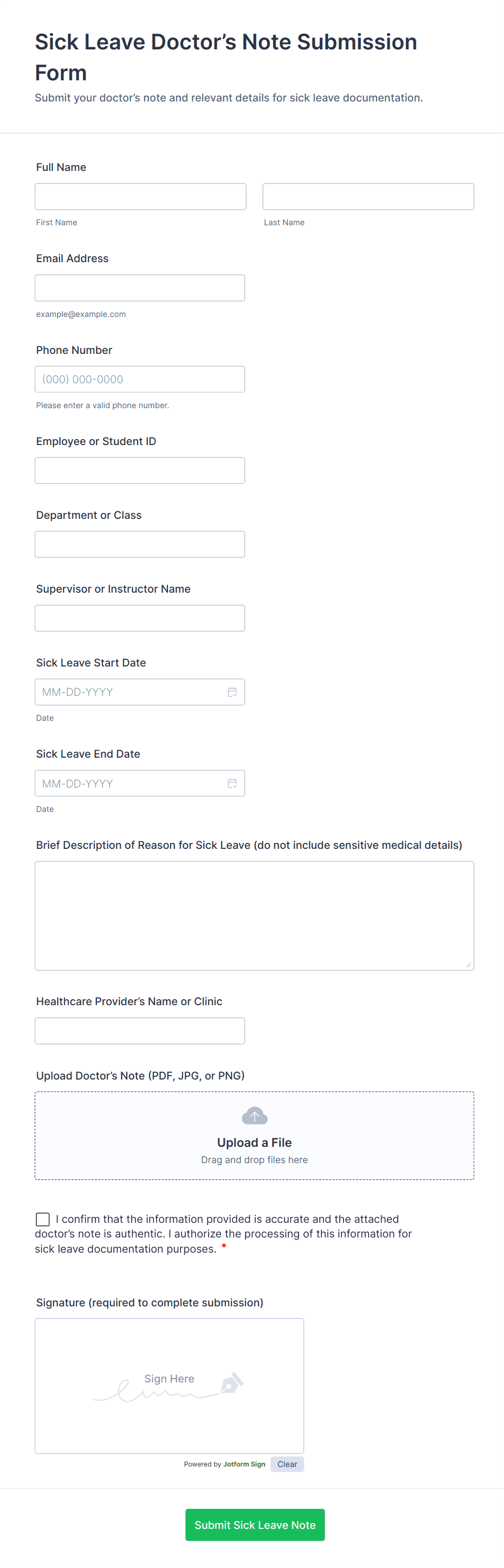 - Use Jotform’s conditional logic to show or hide fields based on the type of leave selected.