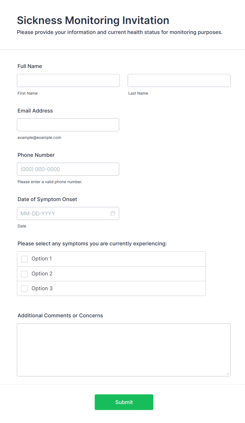 Employees can complete this form online and report any COVID-19 symptoms they may have. No coding is required. HIPAA compliance option.