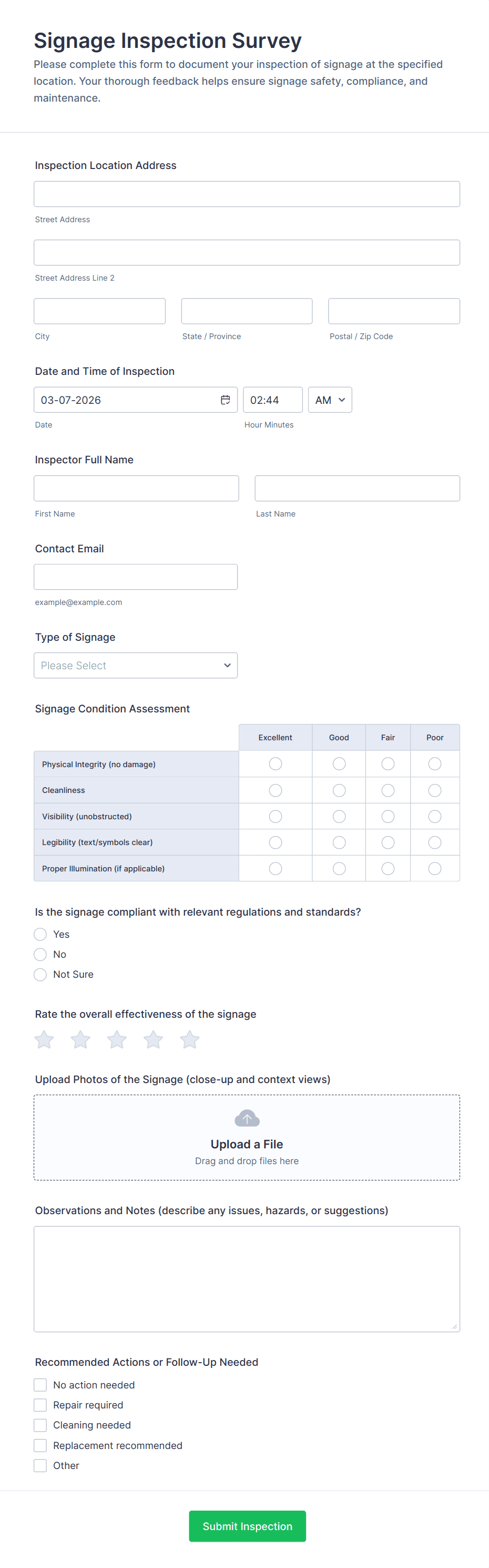 By following these steps, you can create a comprehensive Safety Inspection Form that streamlines your inspection process, enhances compliance, and supports a safer work environment.