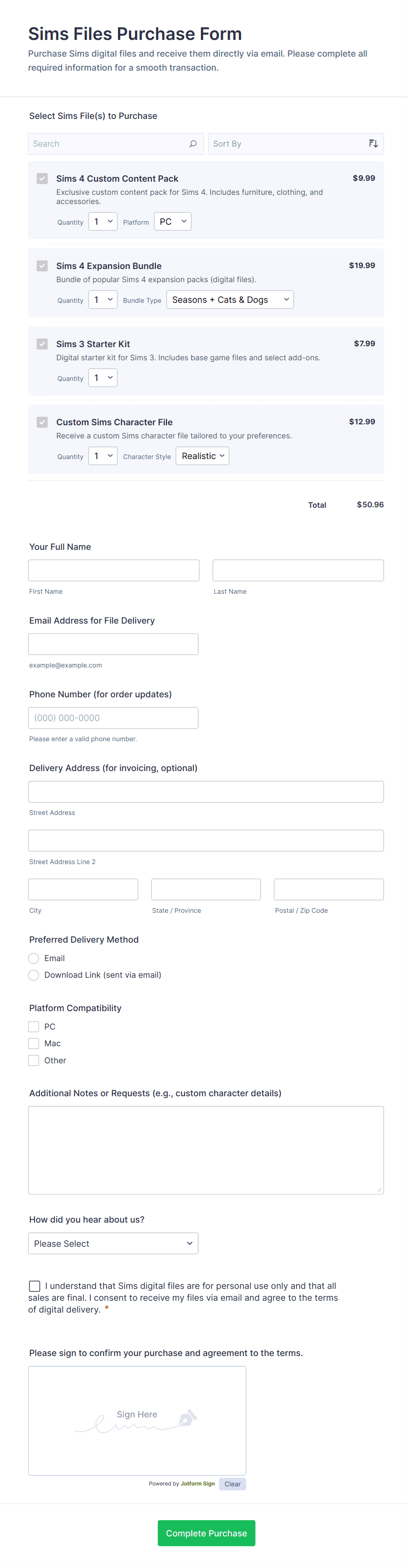 • Pre-Order vs. Immediate Purchase: Pre-order forms might include expected delivery dates or deposit options.