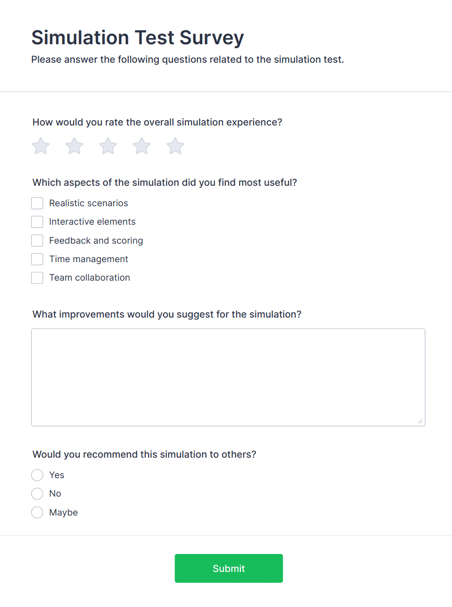 - For customer satisfaction surveys, include Net Promoter Score (NPS) fields or star ratings.
