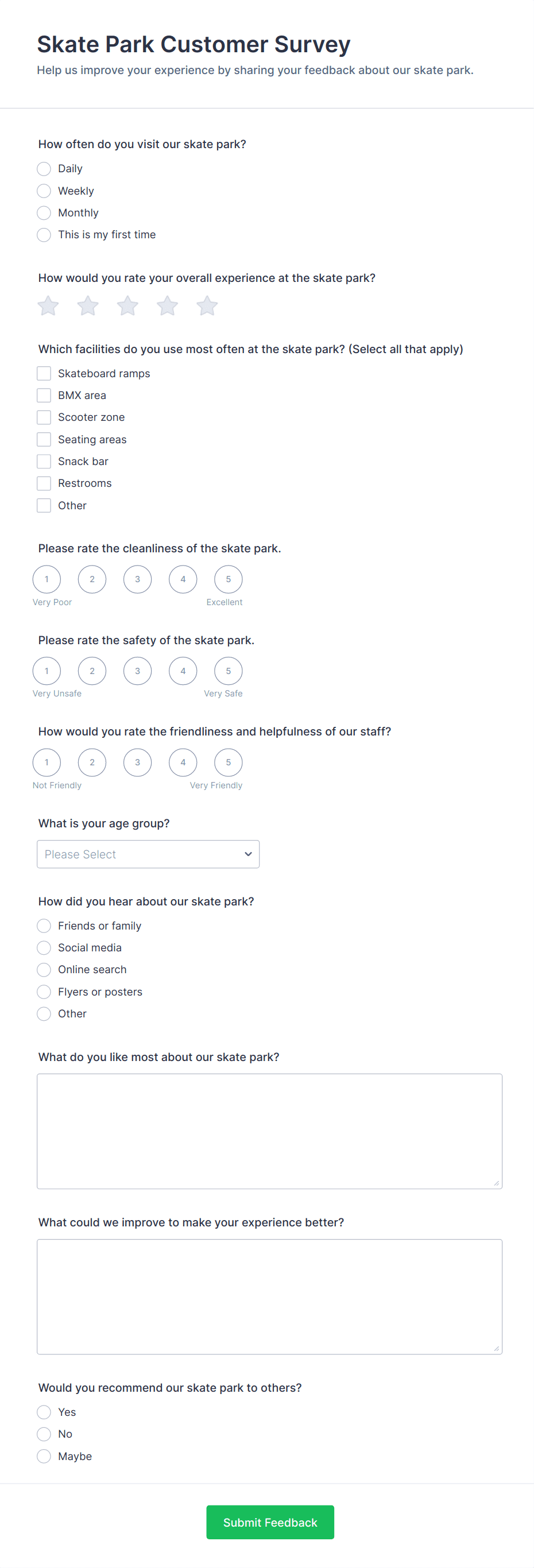 • For customer feedback, include questions about satisfaction, product quality, and likelihood to recommend.