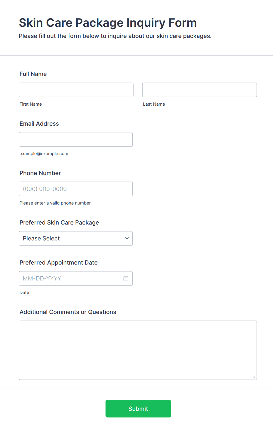 At a minimum, contact forms typically collect the user’s name, email address, and message. Depending on the use case, additional fields like phone number, inquiry type, or file uploads may be included.