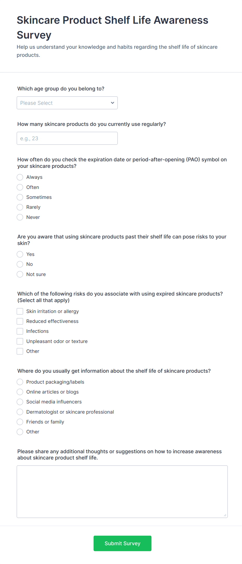 Skin Care Product Feedback Form