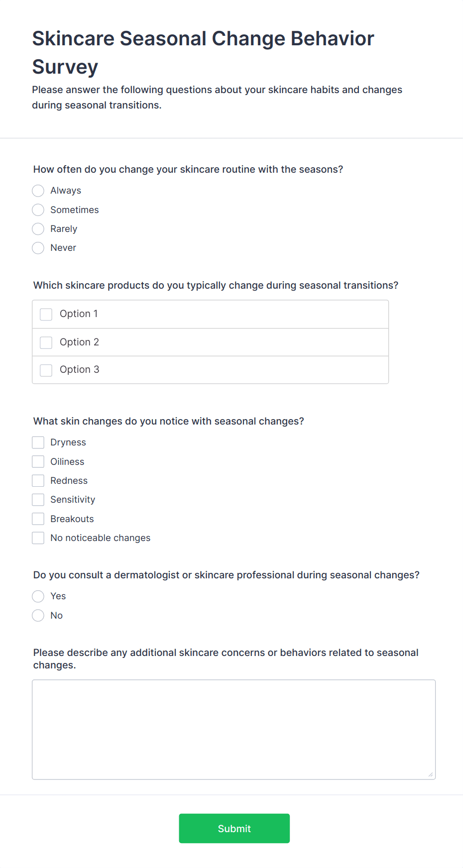 - Healthcare Surveys: Assess patient satisfaction, collect health histories, or screen for symptoms.