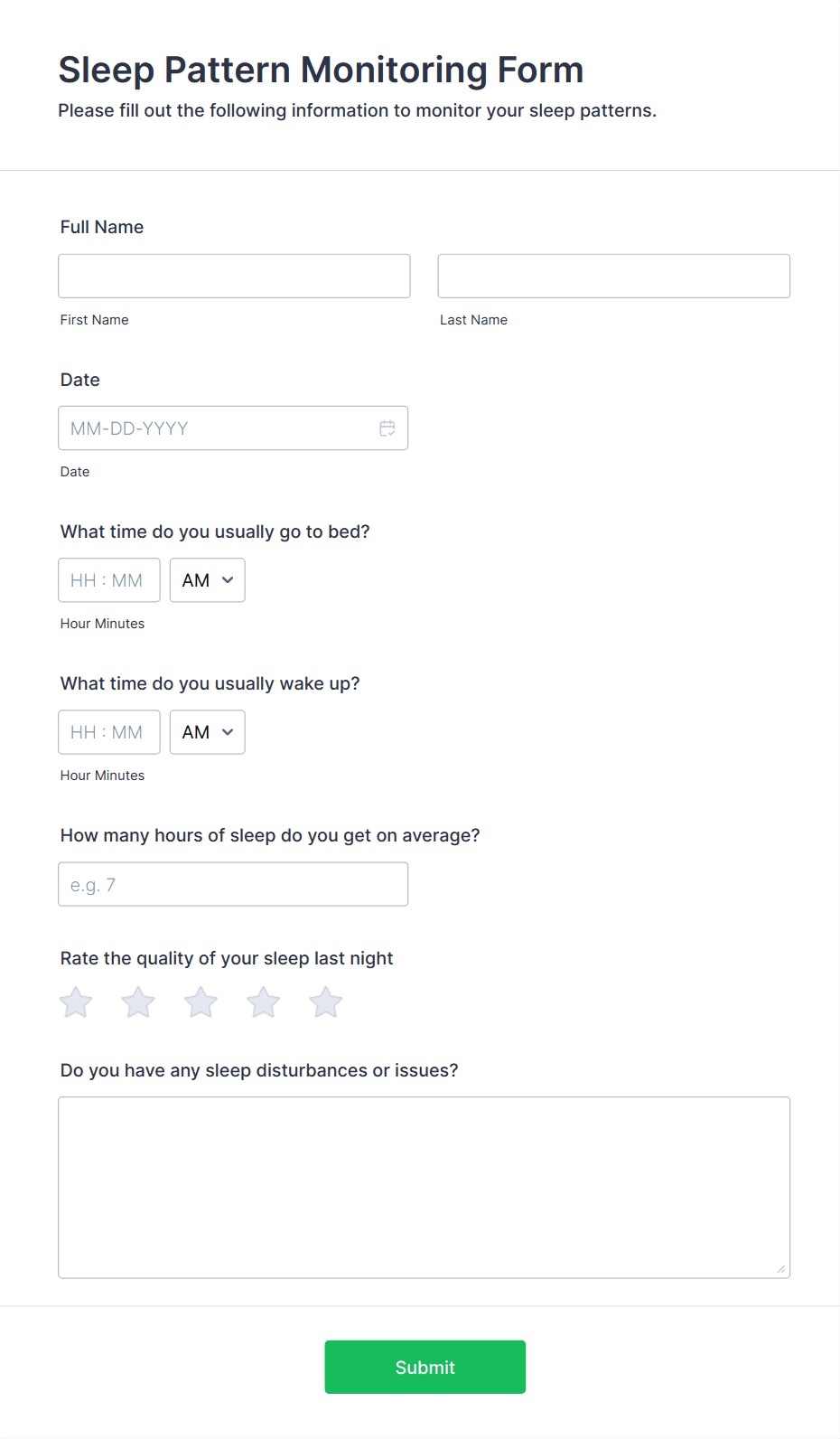 In summary, Health Tracking Forms are versatile tools that can be tailored to fit a wide range of health monitoring needs, with content and structure varying based on the specific use case and user requirements.