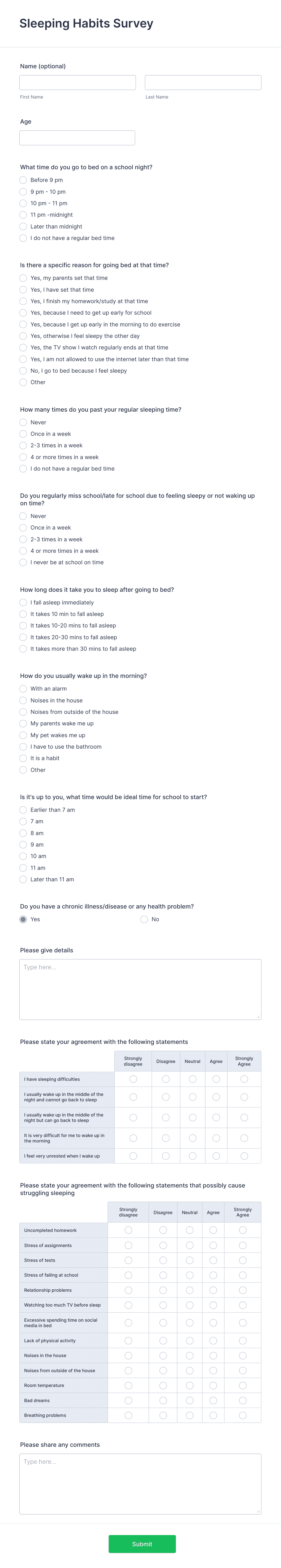A sex education survey is a questionnaire used by teachers, parents, health professionals, and counselors to obtain feedback from students on their sex education. No coding!