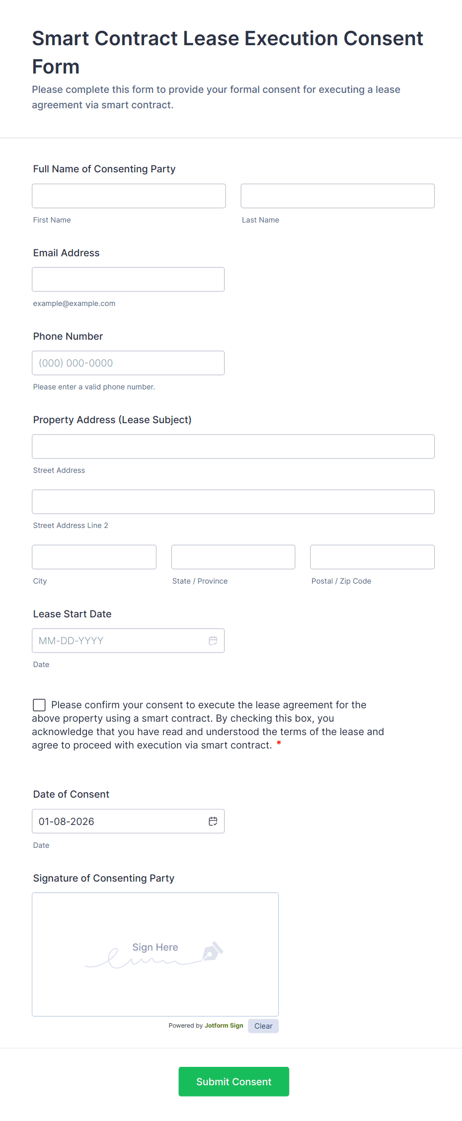 • The inclusion of e-signature fields, checkboxes for agreement, and conditional logic can vary based on the sensitivity and complexity of the consent required.