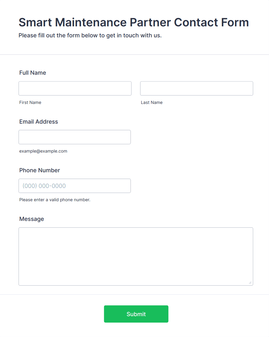 A maintenance request form is used by both property owners and building managers to identify maintenance issues and submit service requests. Easy to use. No coding.