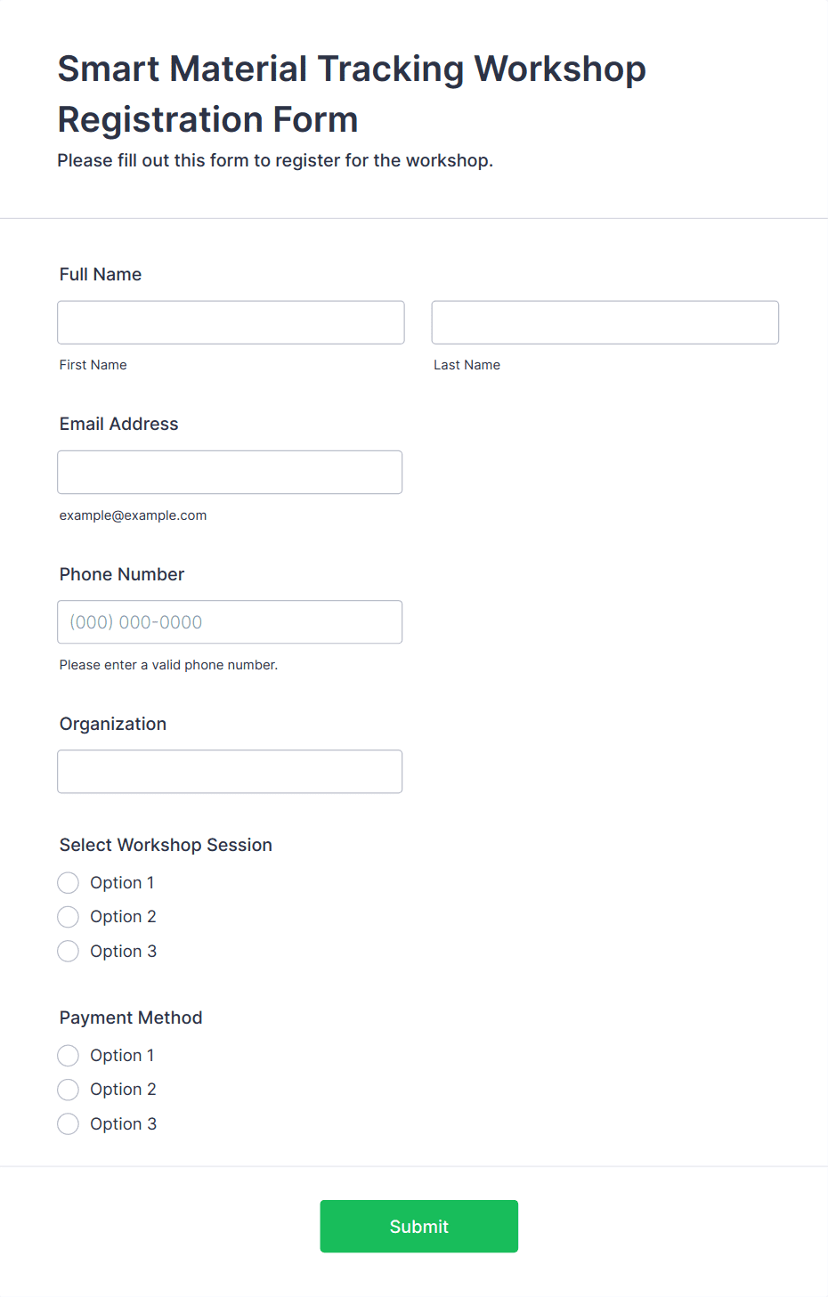 3. What information should be included in a workshop registration form?