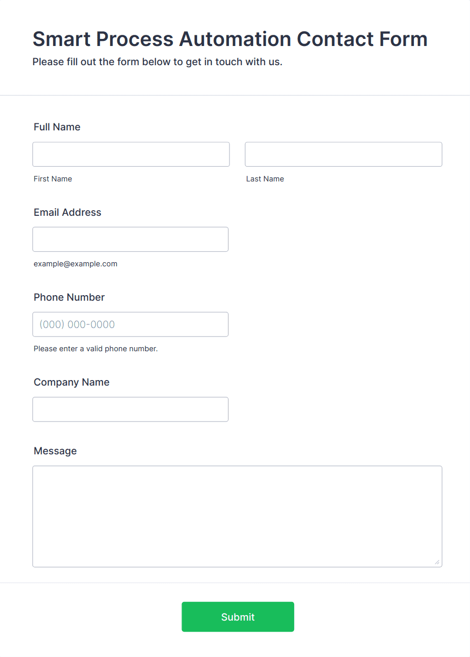 - Sales or quote request forms could ask for company details, budget, and specific service interests.