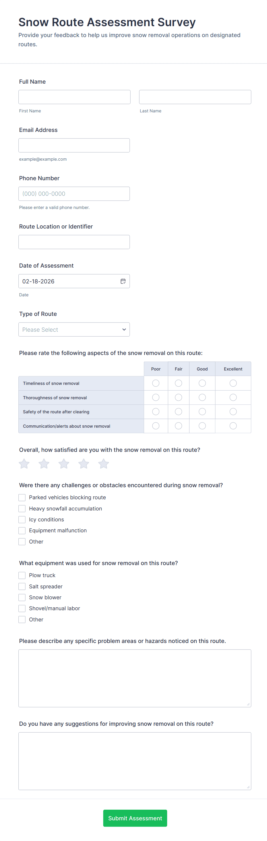 • Conditional Logic: Some forms may use conditional fields to display additional questions based on previous answers (e.g., if a hazard is found, prompt for corrective action details).