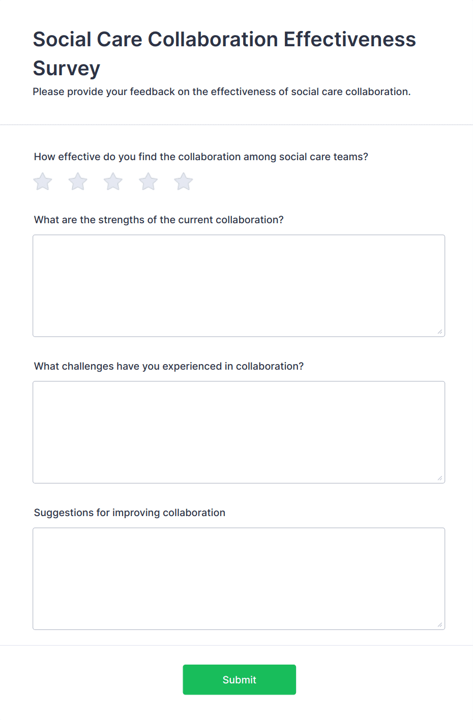 Healthcare surveys are specialized questionnaires designed to collect valuable information from patients, healthcare professionals, and other stakeholders within the medical field. These surveys can be used for a variety of purposes, such as assessing patient satisfaction, gathering feedback on healthcare services, monitoring public health trends, evaluating treatment outcomes, and conducting research studies. Healthcare organizations, clinics, hospitals, and research institutions rely on these surveys to improve patient care, streamline operations, and ensure compliance with industry standards.