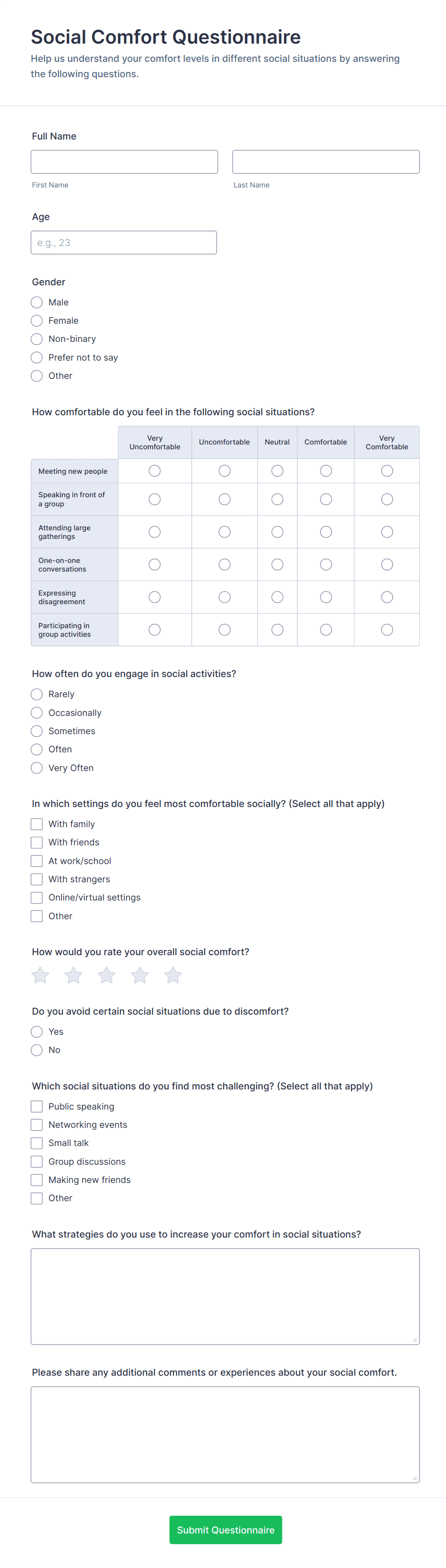 - Some questionnaires require conditional logic to show or hide questions based on previous answers.