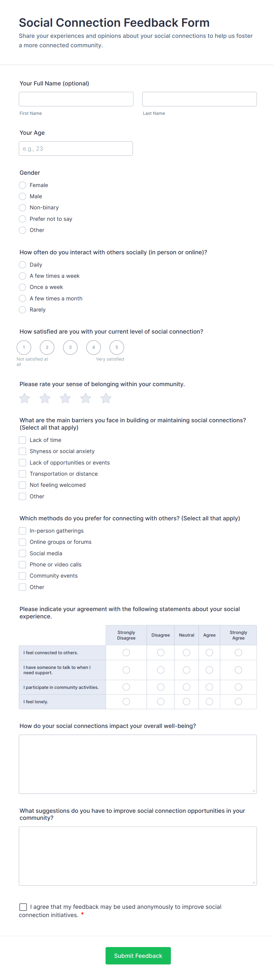 Ask people how they feel about relationships. Free online relationship questionnaire. Perfect for research. Easy to customize and fill out. No coding.