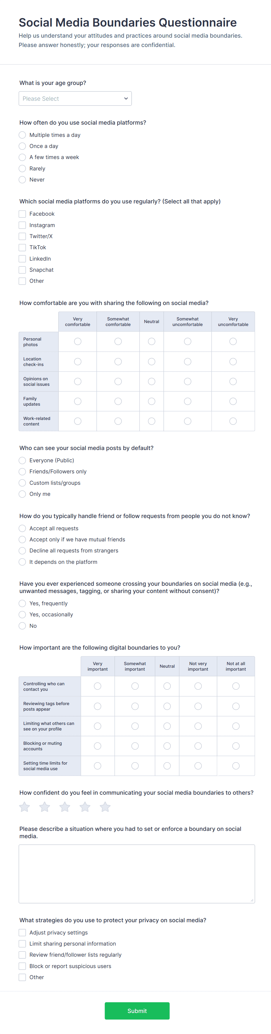 Conduct mental health assessments with this free survey template for businesses, schools, and more. Easy to customize and fill from any device. No coding.