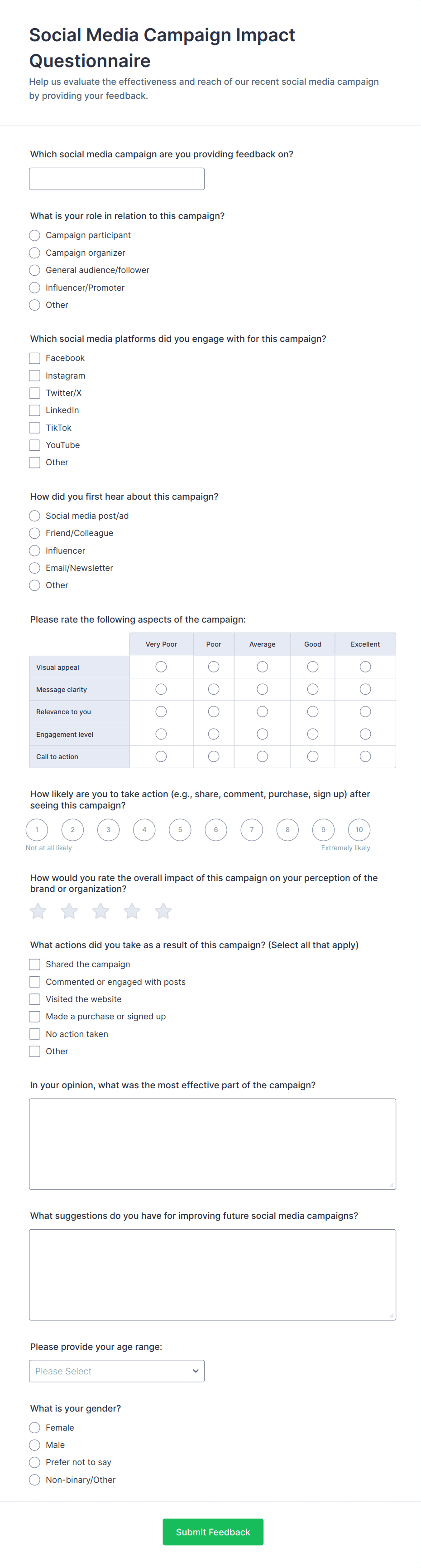 • For customer feedback, include satisfaction ratings and open-ended comment fields.