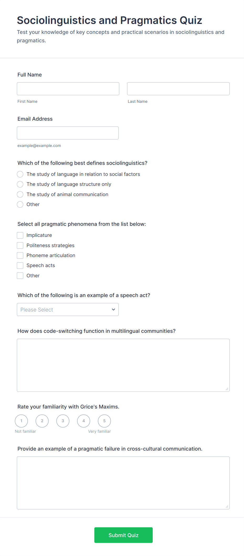 A Trivia Quiz Form is a versatile tool that can be adapted to various contexts and objectives, serving as a fun, interactive, and engaging way to entertain, educate, and connect with audiences.