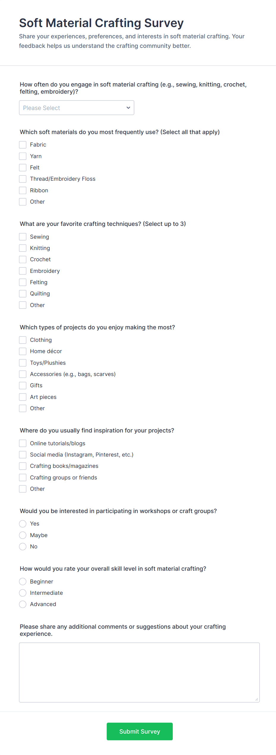 • Customer Satisfaction Surveys: Gather feedback on products, services, or experiences to improve offerings.