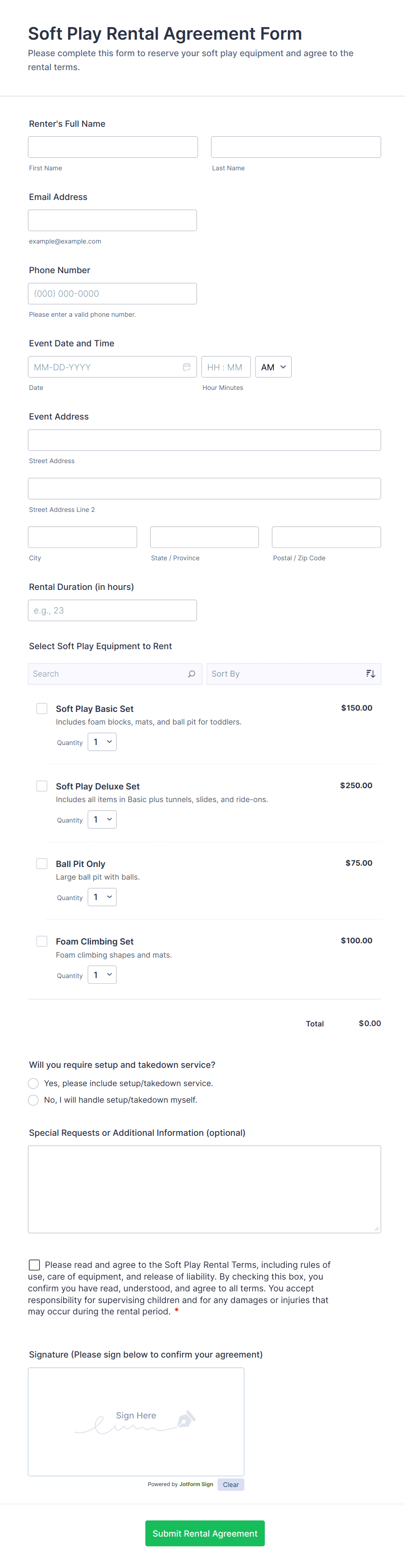 The form templates here are for informational purposes only. Jotform is not providing legal, financial, or other advice, or implying that the forms are legally valid in all or any jurisdictions. Before using any such form, consult an attorney and/or other applicable professionals to make sure that the form meets your needs, legally and otherwise.