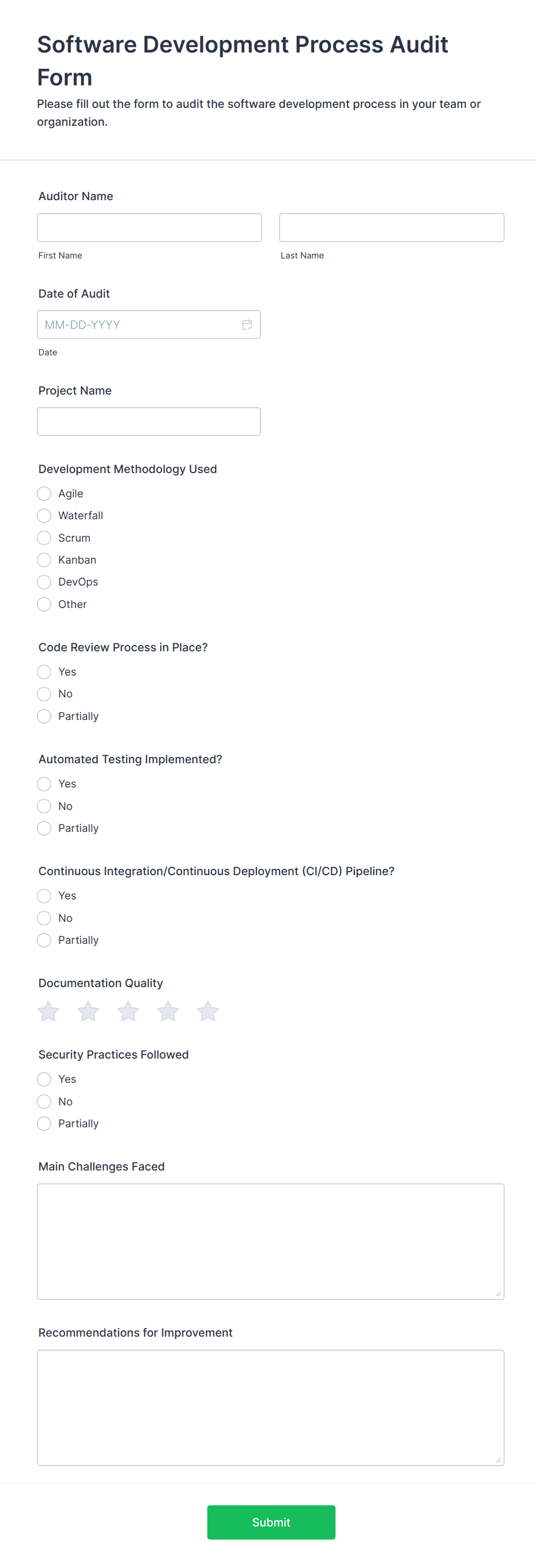 Audit forms are used by safety officers, quality managers, compliance teams, auditors, facility managers, HR professionals, and other stakeholders responsible for oversight and evaluation.