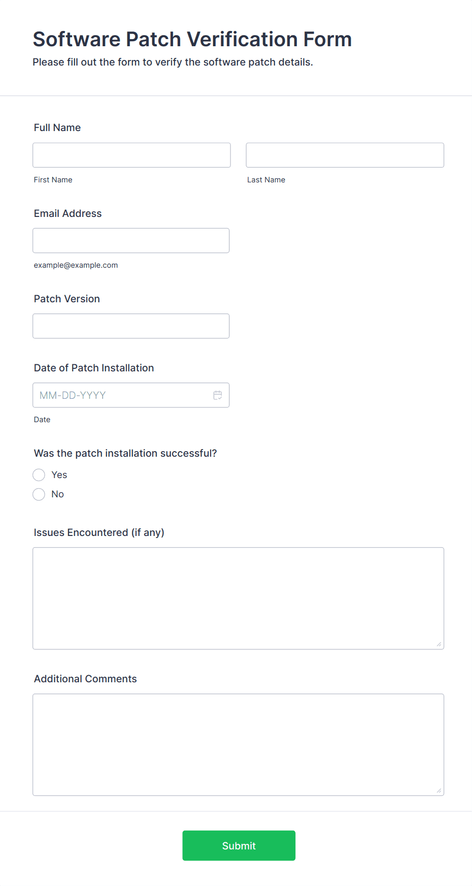 Verification forms are specialized digital tools designed to authenticate, validate, or confirm information provided by individuals or organizations. These forms are commonly used to verify identities, credentials, employment status, addresses, or other critical data points in a secure and efficient manner. Typical use cases include onboarding new employees, confirming student enrollment, validating customer identities for financial services, or ensuring the accuracy of submitted documents in compliance processes. By streamlining the verification process, these forms help organizations reduce fraud, maintain regulatory compliance, and build trust with their stakeholders.