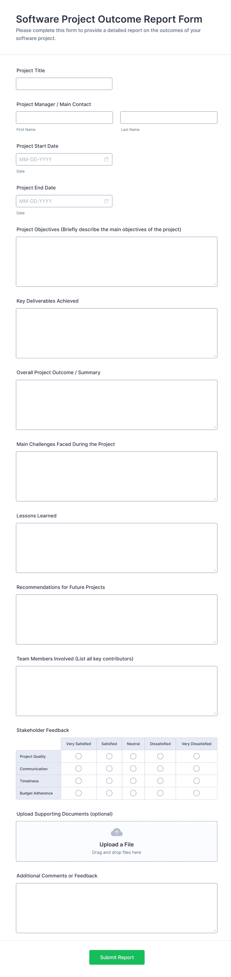 • For business reports: Include fields for dates, metrics, comments, and file uploads.