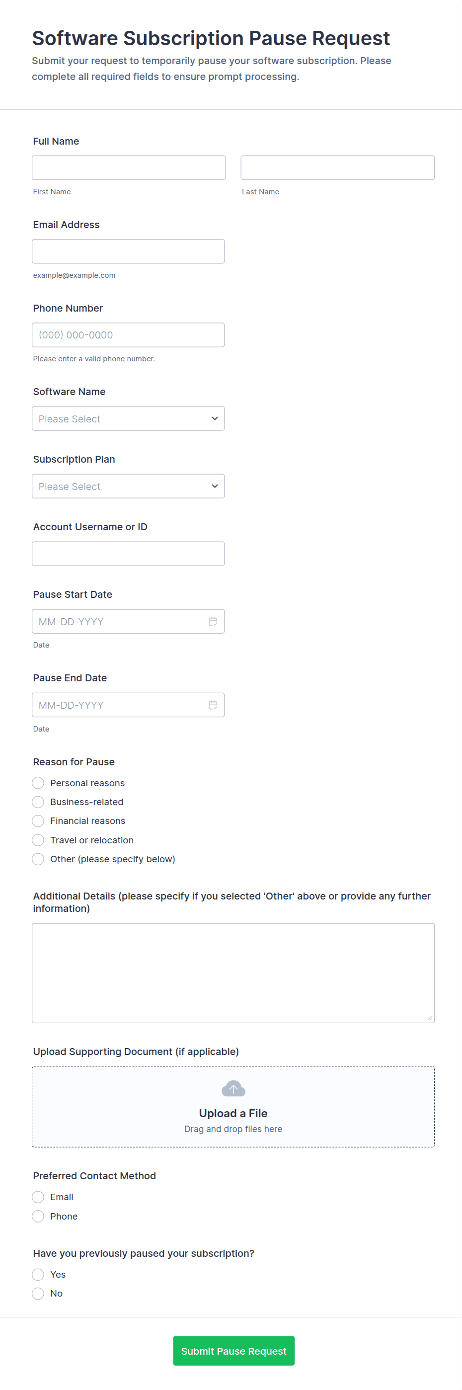Subscription forms are digital tools designed to collect information from individuals who wish to sign up for recurring services, newsletters, memberships, product updates, or other ongoing communications. These forms are essential for businesses, organizations, and content creators looking to build and manage subscriber lists, automate sign-ups, and streamline the process of onboarding new members or customers. Subscription forms can be used for a variety of purposes, such as email newsletter signups, magazine or product subscriptions, membership registrations, SaaS onboarding, and more. They help organizations maintain regular contact with their audience, nurture leads, and foster long-term relationships.