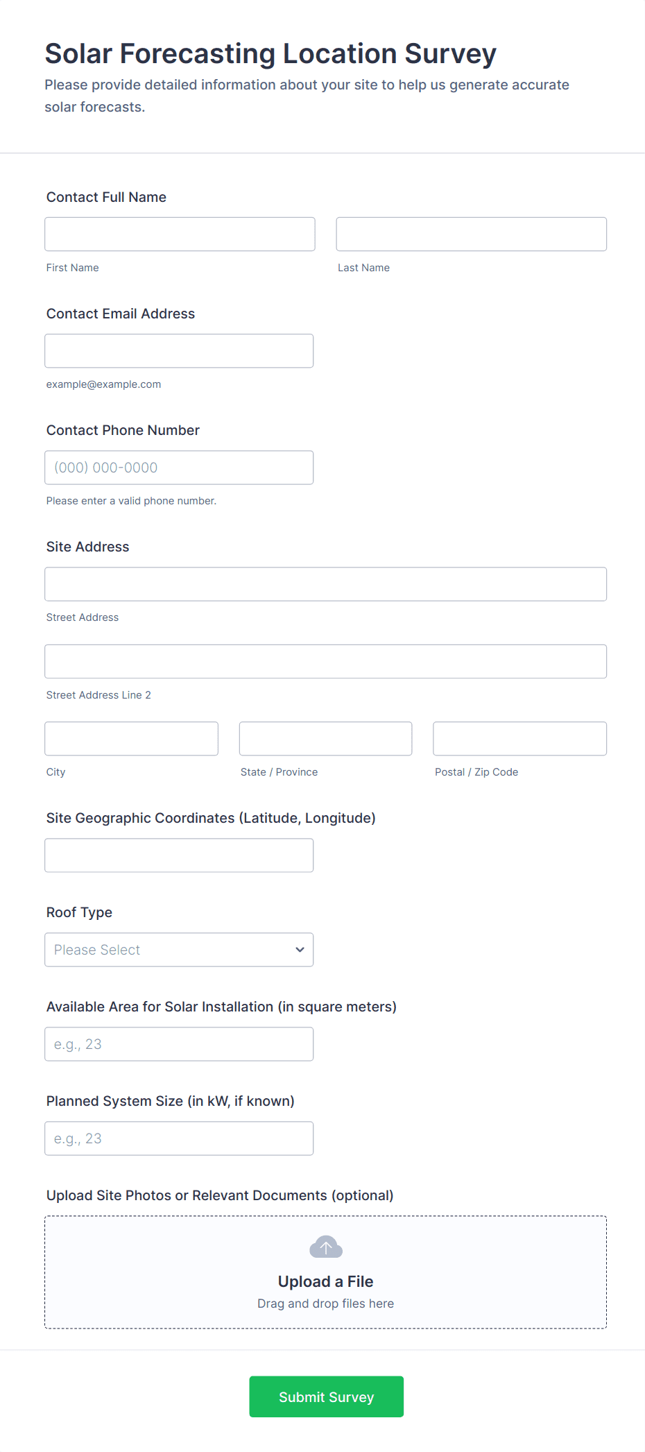 An asset survey is a form that workers fill out to get information about the status of certain assets at a certain location. Paperless documentation with Jotform!
