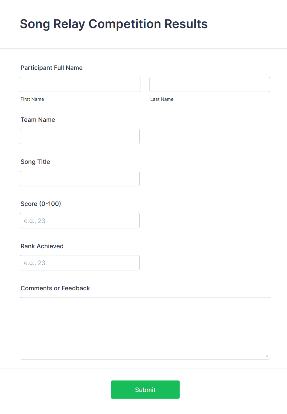 23 Slot Unique Ranking Form With Email Response
