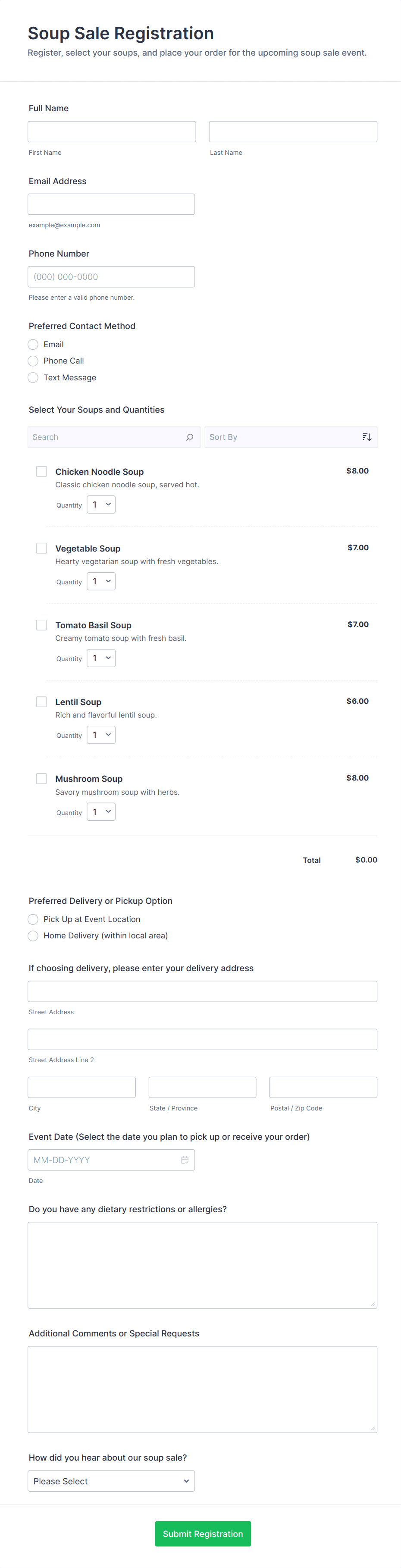 - Special Instructions: Allow supporters to leave notes or specify preferences.