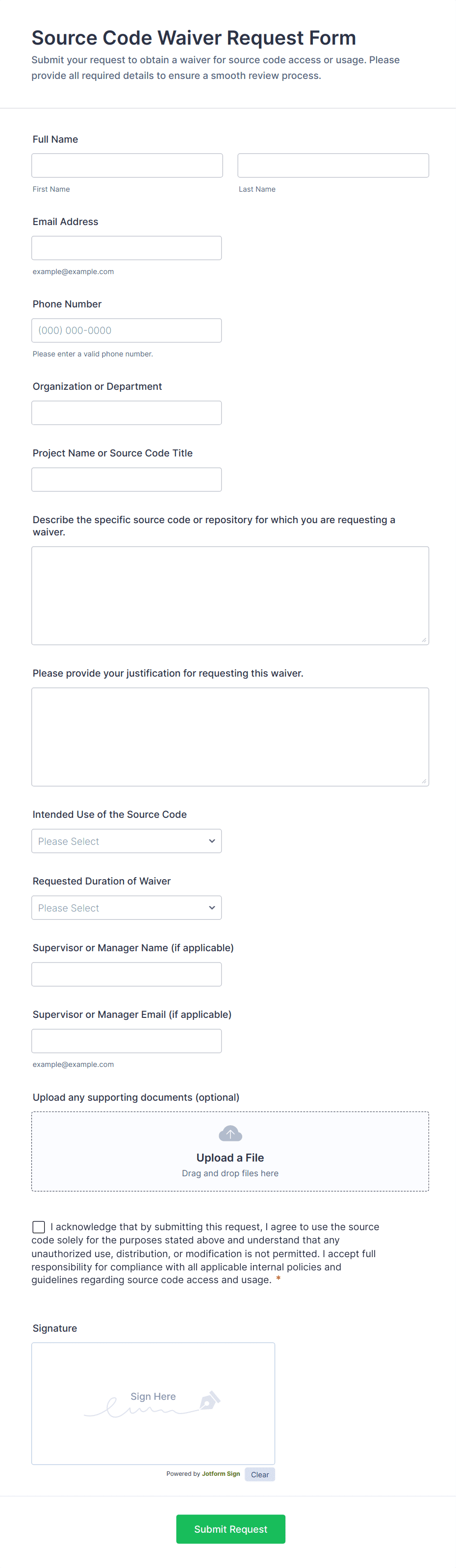 Leveraging Jotform’s powerful online form builder, users can easily create and customize IT Request Forms to fit their organization’s unique workflows. With Jotform’s intuitive drag-and-drop interface, no coding skills are required to add fields, set up conditional logic, or integrate with other business tools. Submissions are automatically organized and stored securely, making it simple for IT teams to manage requests, prioritize tasks, and communicate updates. Whether you’re a small business or a large enterprise, Jotform’s IT Request Forms can help you streamline IT service management and improve response times.