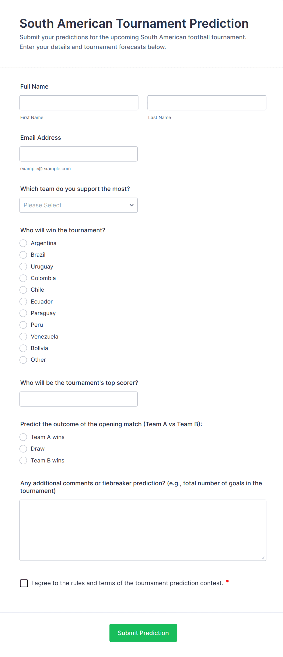 A sports form template is a pre-designed online form used to collect and manage information related to sports activities, such as registrations, waivers, event sign-ups, and feedback.