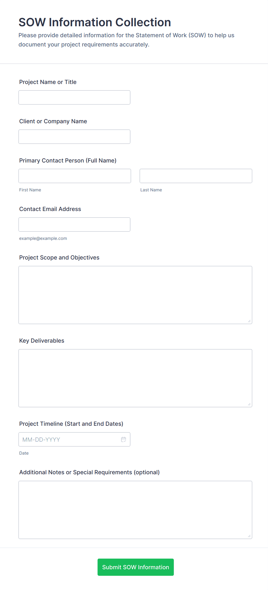 Information Form Templates are versatile digital forms designed to collect, organize, and manage a wide range of data from users, clients, or employees. These templates are commonly used for gathering personal details, contact information, feedback, preferences, or any other type of structured data required for business, educational, healthcare, or event-related purposes. Whether you need to onboard new clients, register participants for an event, collect feedback, or simply update records, information forms streamline the process by providing a standardized and efficient way to capture essential details.