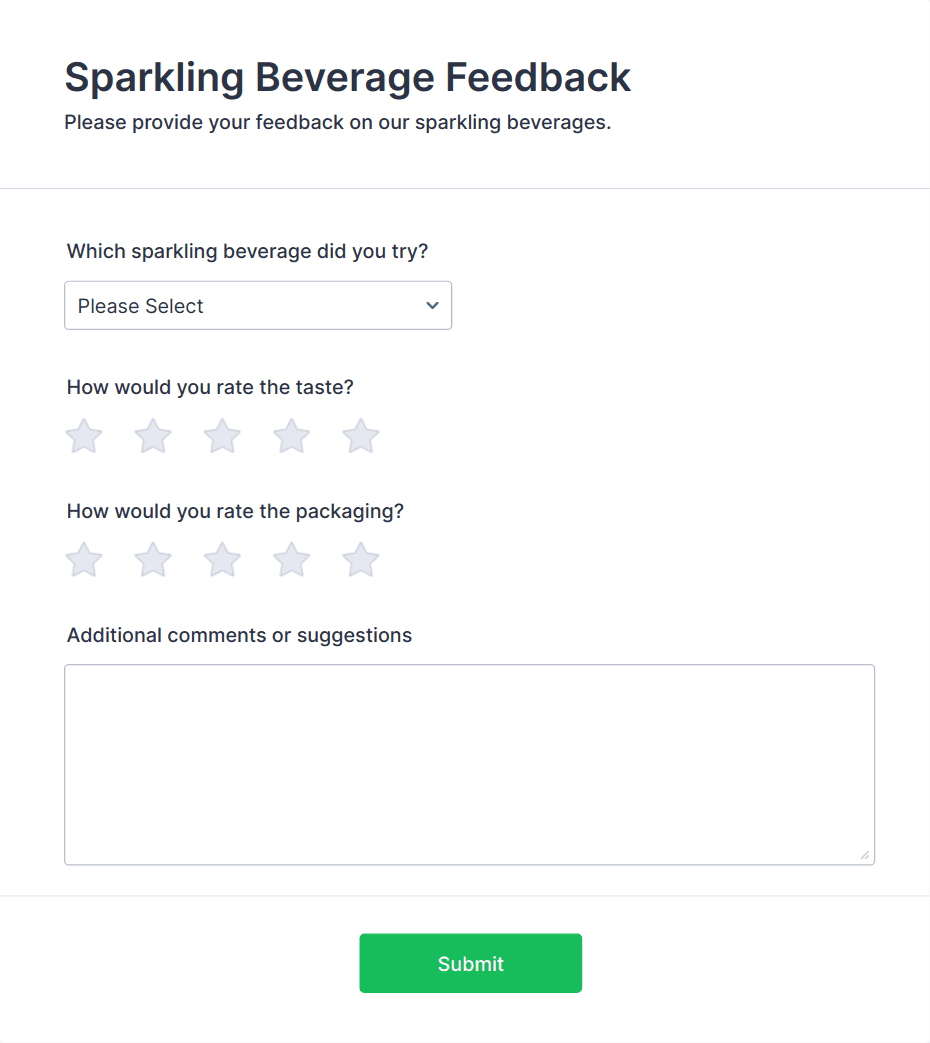 • Product feedback forms may include questions about usability, features, and likelihood to recommend.