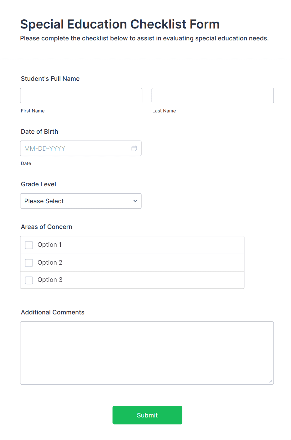 3. What information is typically collected in education forms?