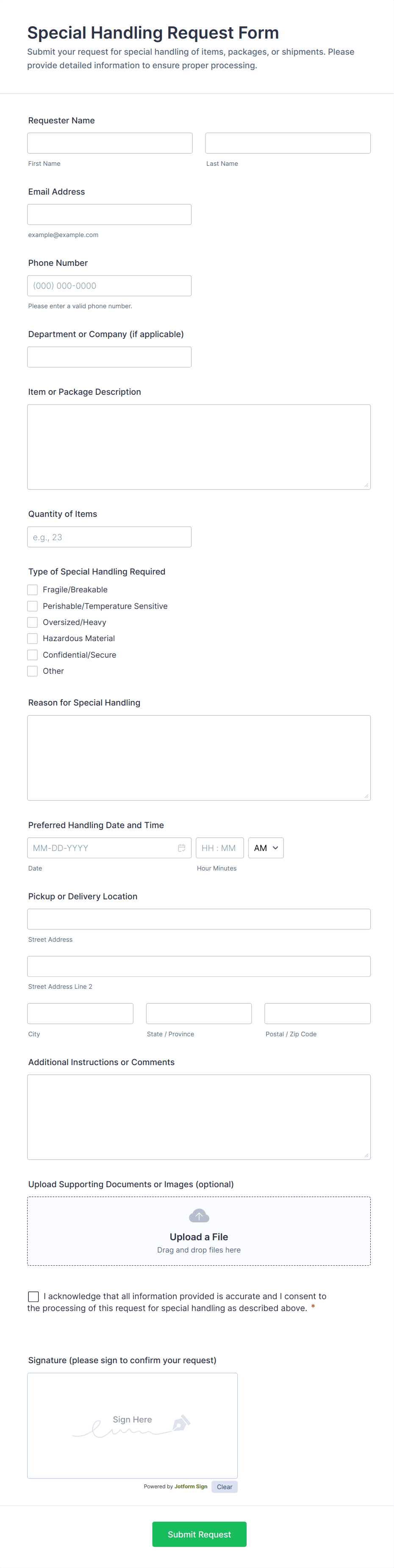 • Delivery Forms: Emphasize item descriptions, delivery addresses, and time windows.