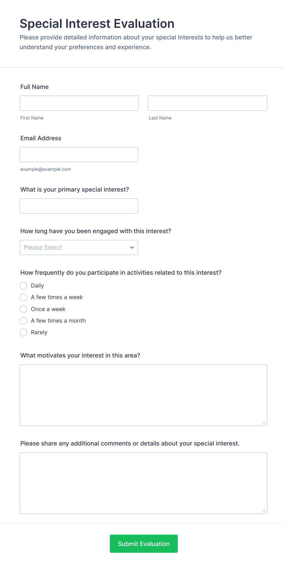 By following these steps, you can create tailored evaluation forms that streamline feedback collection, improve assessment accuracy, and support data-driven improvements in any context.