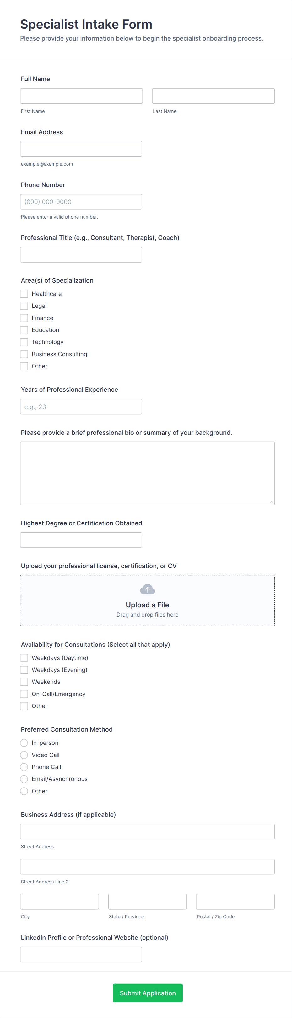 Intake forms are used by healthcare providers, legal professionals, educators, HR departments, consultants, and service-based businesses.
